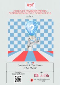Ο Σύνδεσμος Καθηγητών Γαλλικής Π.Ε. (A.P.F.-F.U.-Grèce), μετά τη μεγάλη επιτυχία του 1ου Επιμορφωτικού Σεμιναρίου για τη χρήση των ψηφιακών εργαλείων και της Τεχνητής Νοημοσύνης στη διδασκαλία της γαλλικής γλώσσας, ανταποκρίνεται στα αιτήματα των συναδέλφων και στις σύγχρονες εκπαιδευτικές ανάγκες, διοργανώνοντας το 2ο Επιμορφωτικό Σεμινάριο.